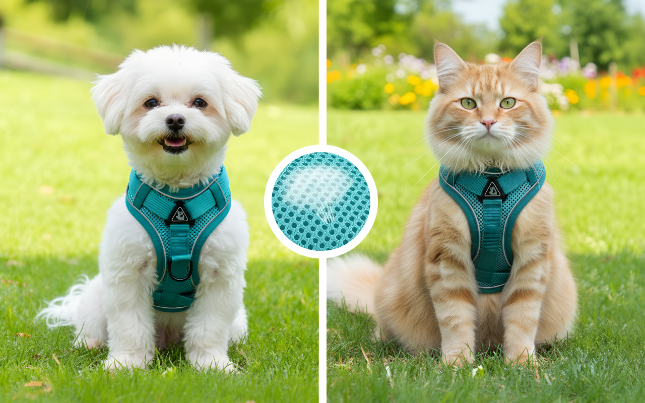 La tela transpirable mantiene a las mascotas frescas durante cualquier actividad al aire libre. Las correas ajustables aseguran un ajuste perfecto tanto para gatos como para perros.