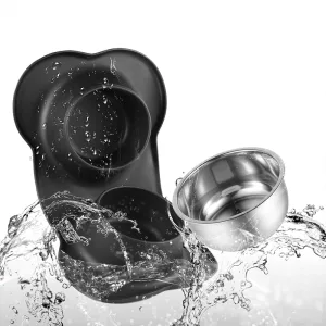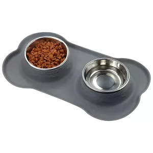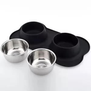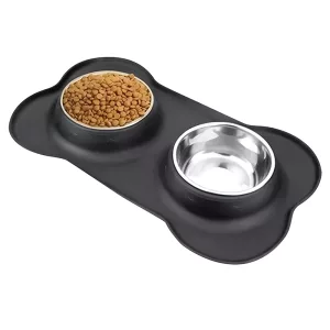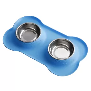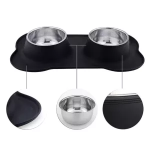 Comedero doble antideslizante para perros con alfombrilla de silicona