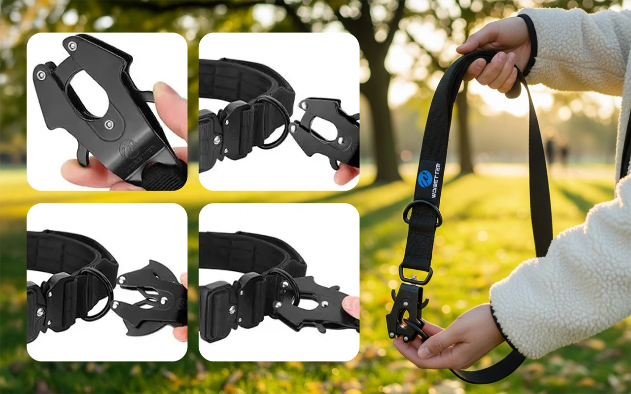 La longitud corta mantiene a las mascotas cerca en multitudes o tráfico. Las piezas fuertes de nailon y metal evitan fugas y roturas.