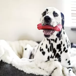 Mi cachorro siempre lleva este hueso para masticar a la cama.