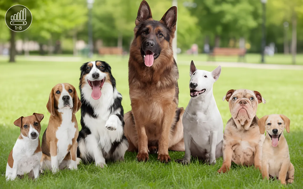 Elige fácilmente entre ocho niveles para un control perfecto en todo momento. Ajusta la configuración para cada raza, asegurando un adiestramiento suave y preciso.