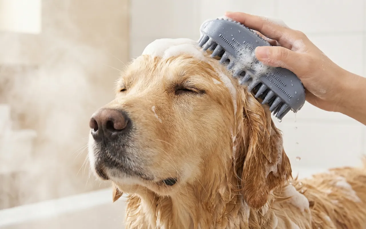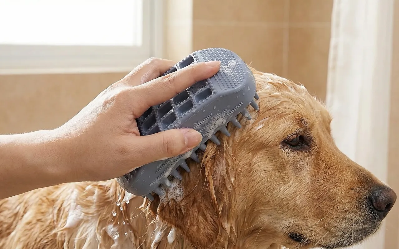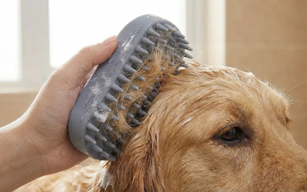 Cepillo de ducha suave para perros, depurador de baño para mascotas