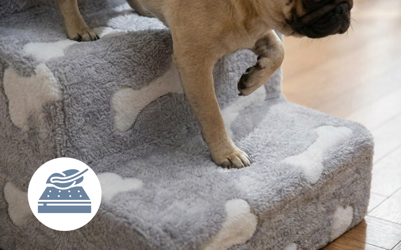 Los animales mayores o mascotas con articulaciones doloridas luchan a diario. Los escalones suaves de Primdog les ayudan a alcanzar sofás o camas con seguridad. Diseñado para la comodidad, esta solución suave protege la movilidad. Elige una vida más fácil y segura para tu querido compañero.