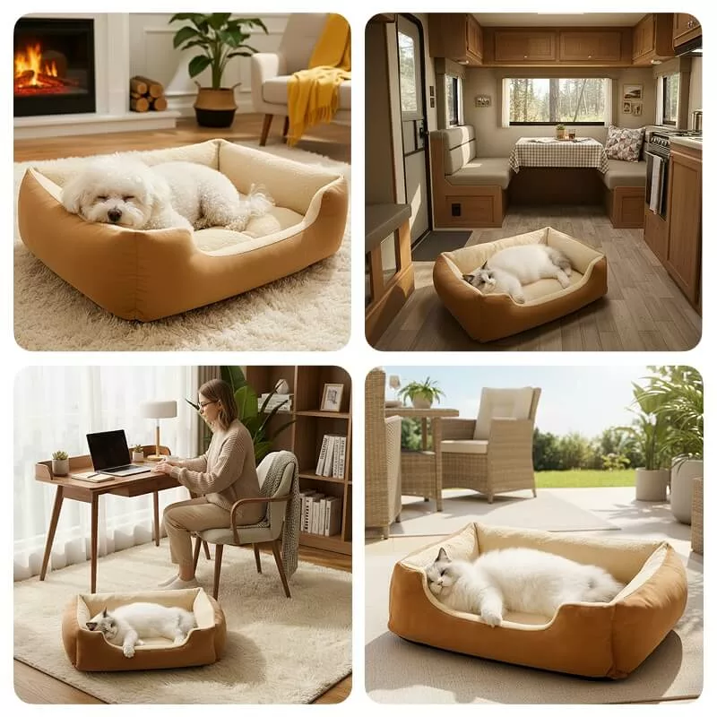 La base antideslizante mantiene la cama estable en cualquier superficie del hogar. Las mascotas se mantienen seguras durante el juego o el sueño sin deslizarse.