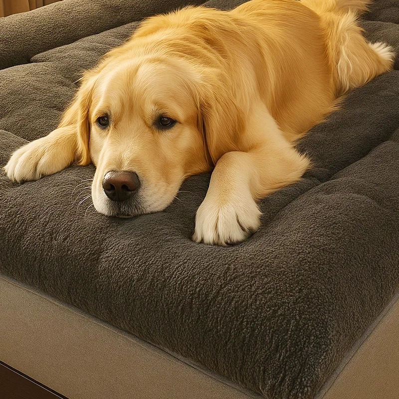 A mi perro le encanta esta alfombra gruesa para sus siestas. Es cálida en invierno pero fácil de voltear cuando hace calor—lo mantiene fresco y feliz. ¡Muy recomendable!