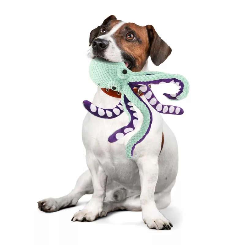 Mi perro solía aburrirse rápido, pero el pulpo lo mantiene ocupado todo el día. Le encanta el sonido y la textura suave.