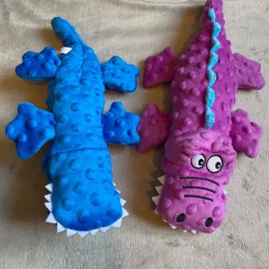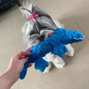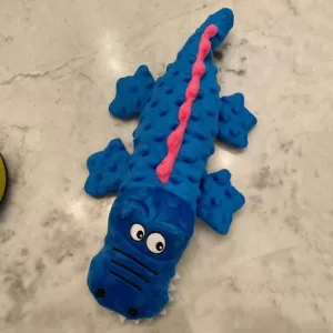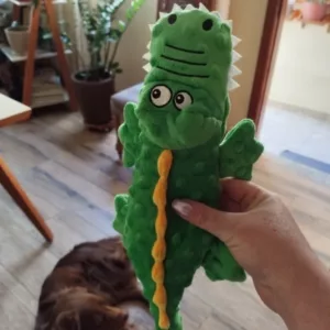 El juguete de peluche de cocodrilo es bastante lindo. A mi perro le encanta jugar mucho con él. Solo desearía que fuera un poco más resistente para los masticadores agresivos.