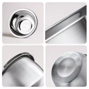 ¡Estos tazones de acero inoxidable son muy resistentes! Ni una sola abolladura o rasguño tras meses de uso. No me preocupa tener que comprar otros pronto.