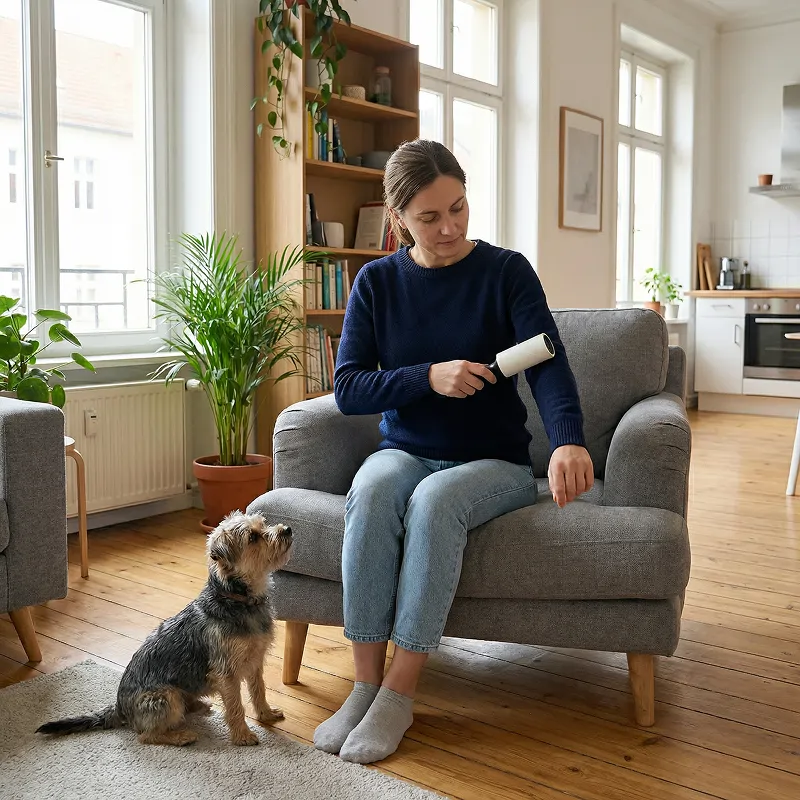 El pelo de mascota en cojines o chaquetas desaparece en segundos cada vez. El rodillo adhesivo Primdog elimina los restos de alfombras, asientos y camas. Disfruta de espacios impecables y atuendos ordenados sin esfuerzo ni complicaciones. Niños y adultos pueden usarlo fácilmente en cualquier situación.