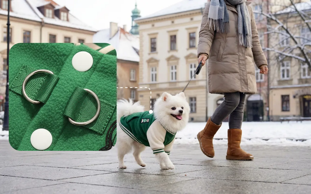 Engancha una correa al anillo resistente para paseos seguros. Sin molestias adicionales de arnés, lo que significa más tiempo juntos al aire libre.
