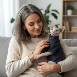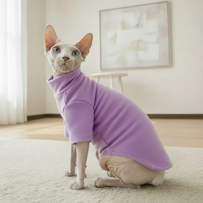 Mi gata solía sentir frío después de los baños. Con este suéter de algodón, se seca mientras se mantiene abrigada y puede jugar como siempre.