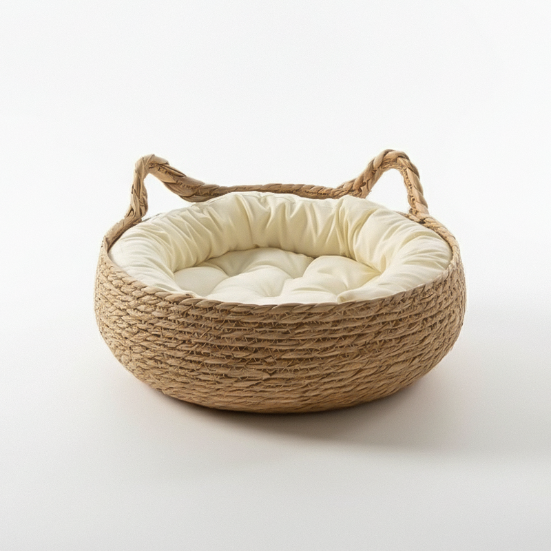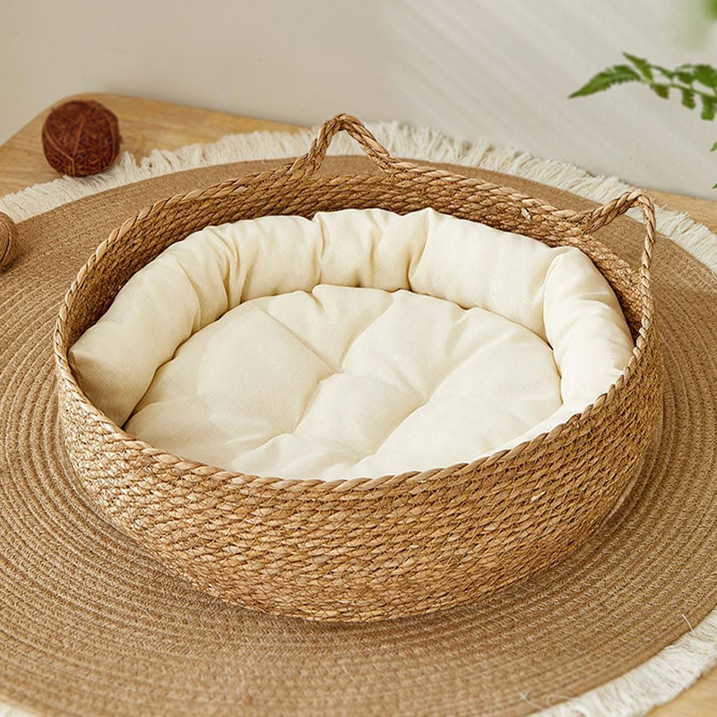 20 valoraciones en Cesta cama de mimbre para gatos con cojín de algodón