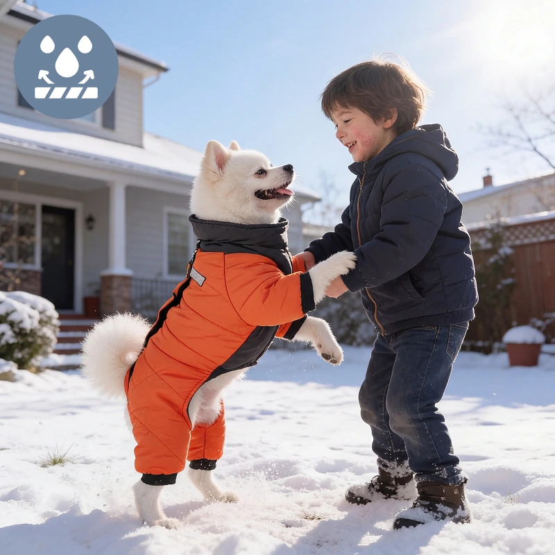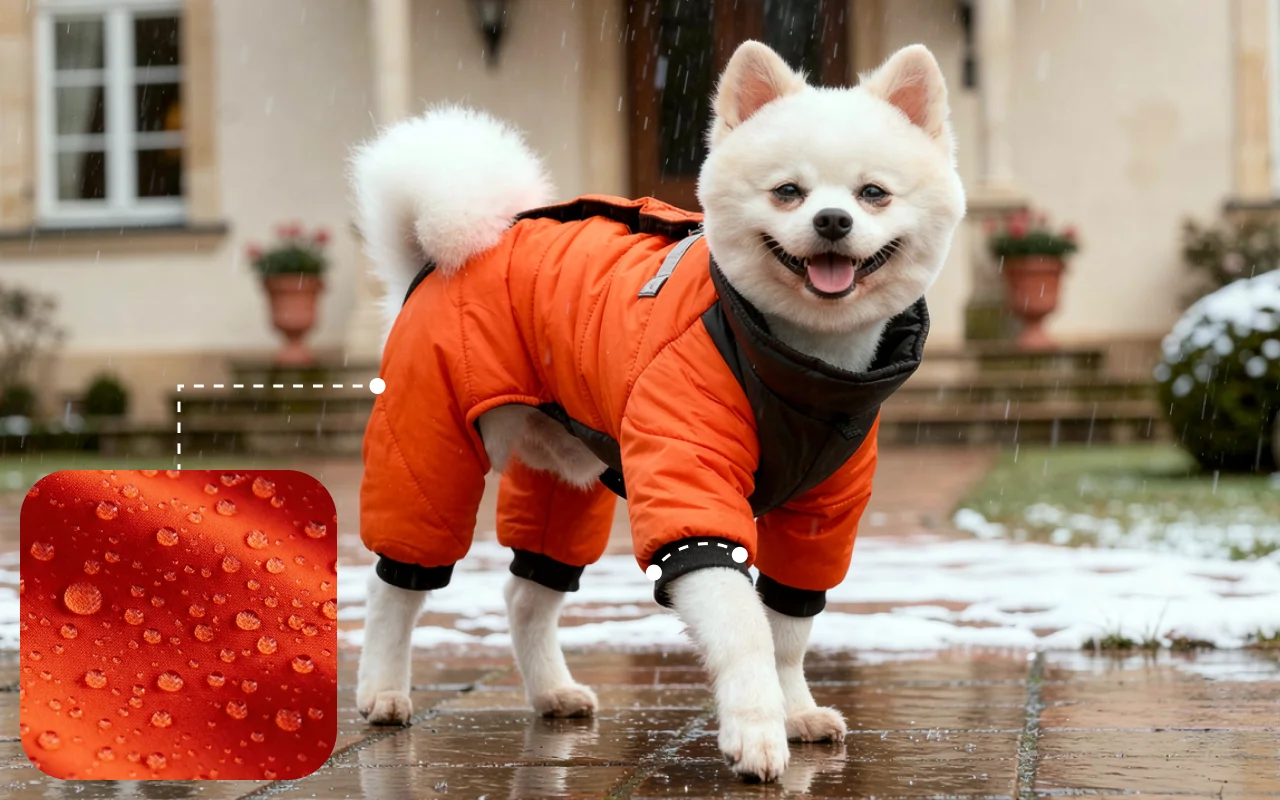 El tejido impermeable mantiene el pelaje seco incluso bajo la lluvia. Los puños a prueba de viento sellan el frío, así que la aventura nunca termina.