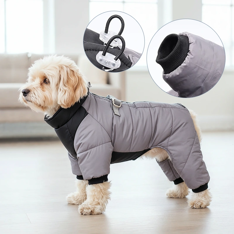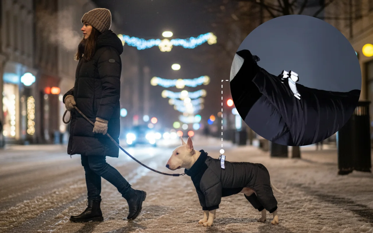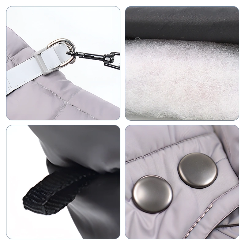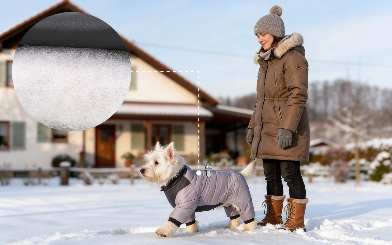 El grueso acolchado detiene el frío durante los paseos helados. Los perros se mantienen felices y protegidos sin temblar afuera.